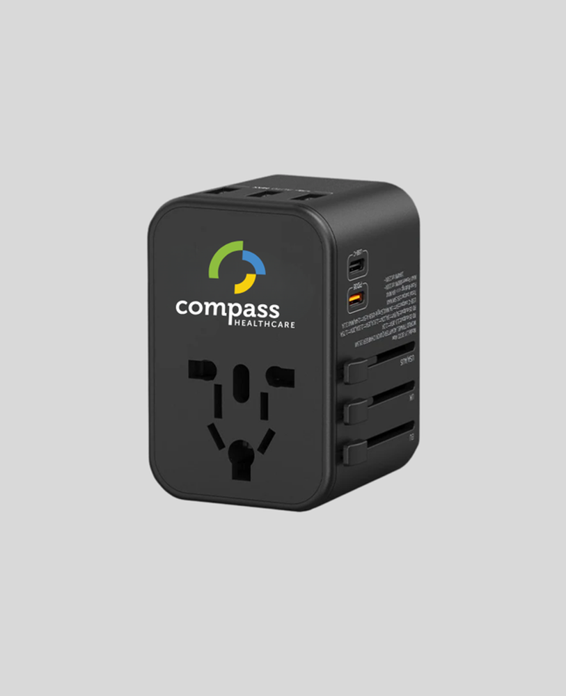 The 4th generation of our popular Expedition travel adapter now boasts a turbocharged 35W USB-C PD output, a 75% increase from the previous model, charging your phone from 0 to 60% in just 30 minutes! Also new is the built-in dual fuse protectors so you can travel the world and charge your devices with a peace of mind. Showcase your logo via full-color digital print, with optional travel case decoration.