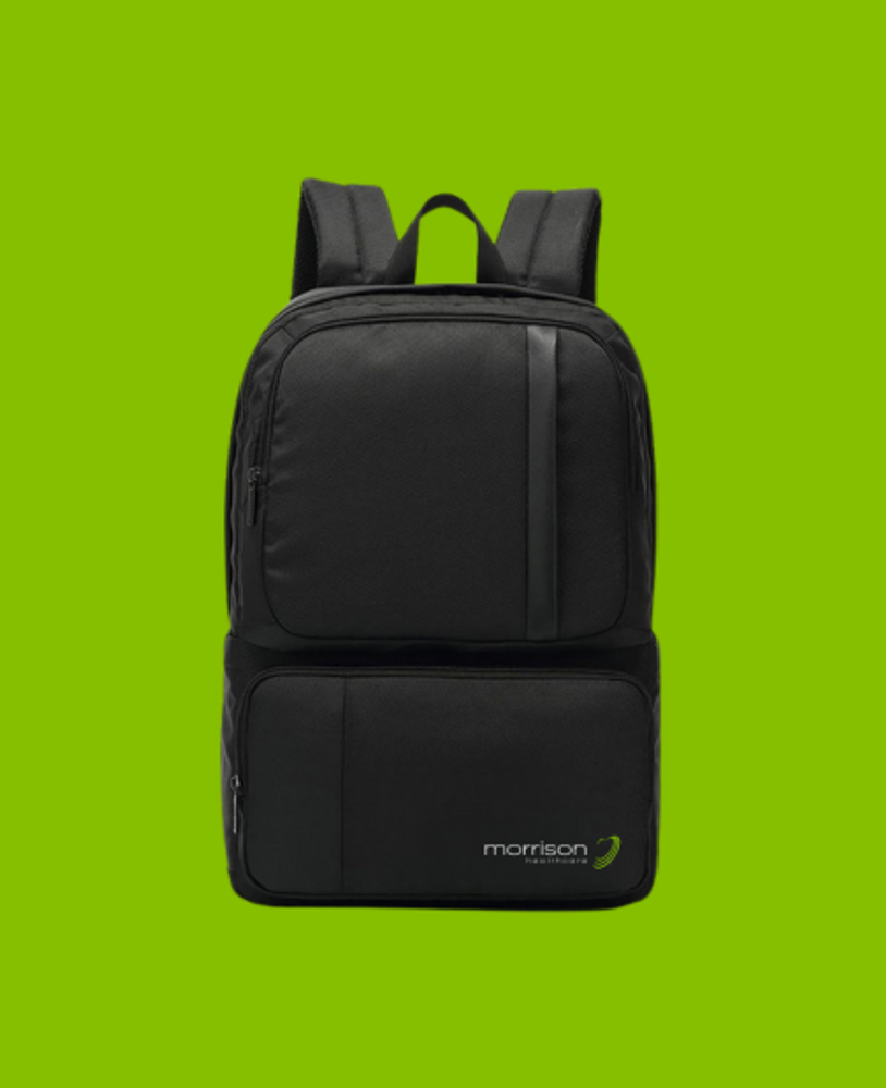 Showcase your brand's commitment to the environment with the Canyon Backpack. Made with recycled plastic bottles and features a 15" laptop compartment, tablet, and multiple zippered pockets. Decorate via lasered patch with optional custom-cut finish.