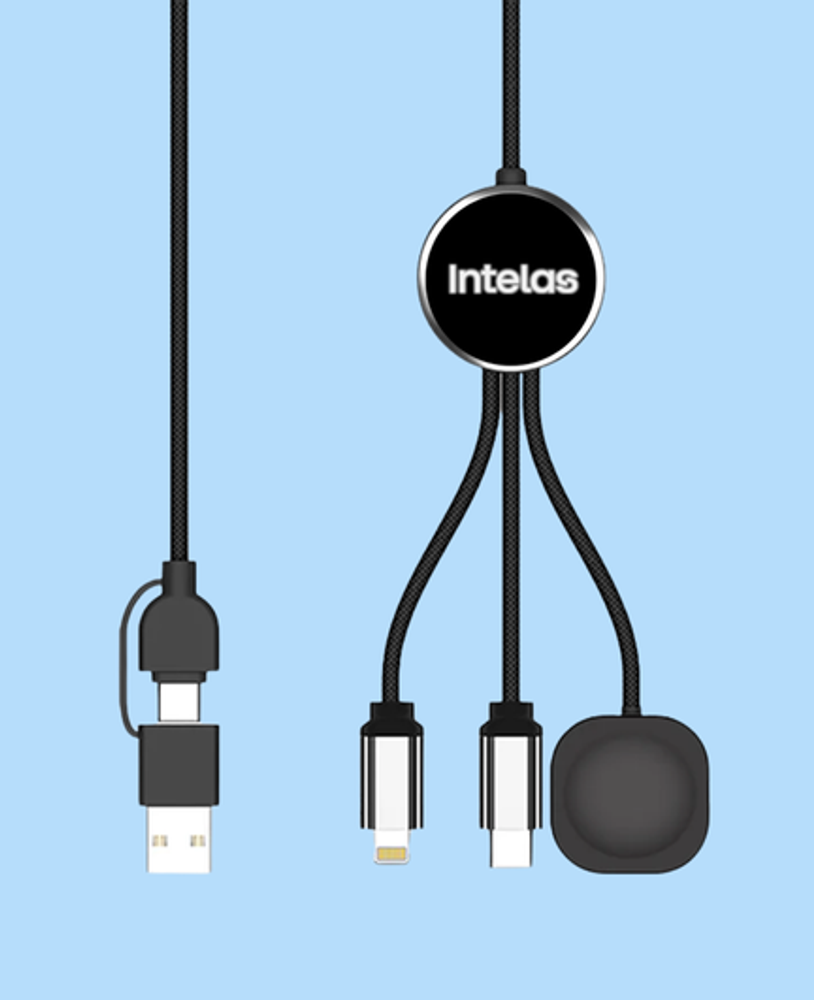 Featuring light up logo display and multiple input/output options, including an apple watch dock! This is a must-have multi cable to keep your devices charged at home and on the go! Each individually packed in retail gift box.
